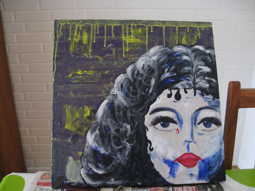 jeg kom lige til at tænke på at billedet af ansigtet har en baggrund og at der måske kunne males noget på baggrunden…bogstaver..mønstre….et eller andet som måske kunne give lidt betydning til ansigtet…sige lidt om havd det er for en pige…måske også gentage de smukke oraganiske former, hun har i hårkanten som et mønster i baggrunden….bare lige mine tanker…ved godt at du selvfølgelig nok selv skal finde på…kunne ikke lige nære mig for at fortælle mine pludeselige idéer……