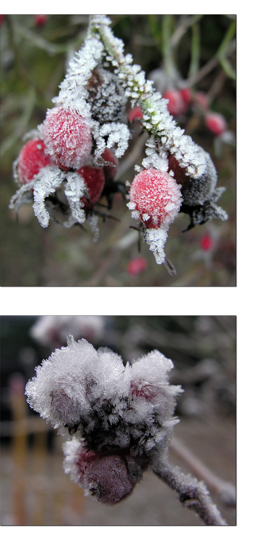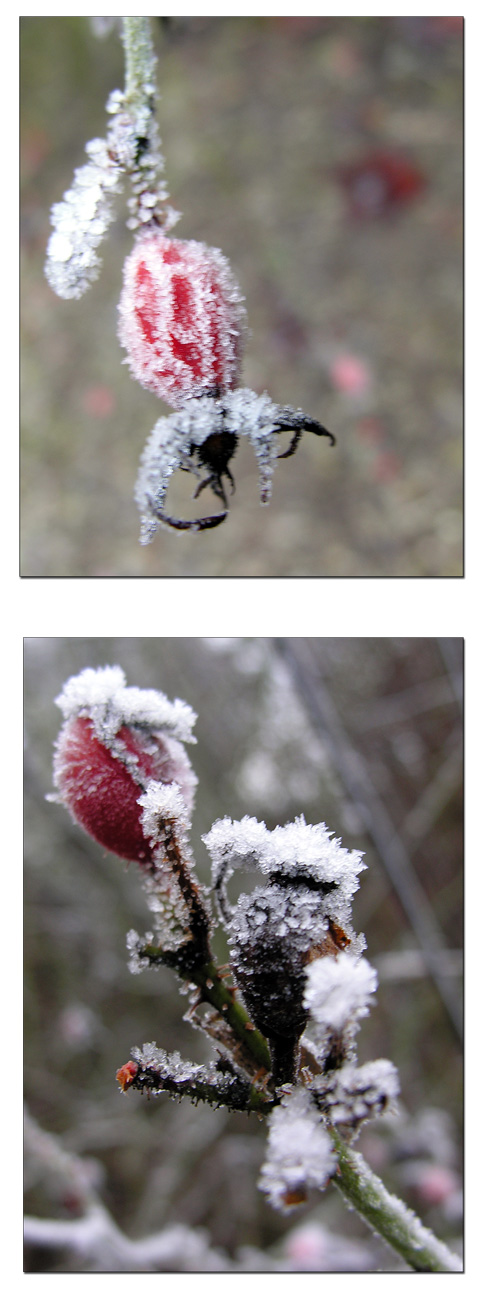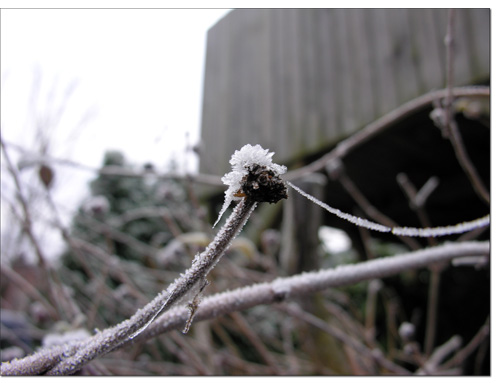 Hvis jeg sniger mig ud med mit kamera, så smutter billederne næsten ind af sig selv. Motiverne er i overtal på sådan en kold og hvid dag. Macro-motiverne er i flertal, de skriger næsten efter at blive taget – igen og igen. En lille knop, et fint blad, en kant, et spindelvæv, ja utallige er de ting, som bliver fremhævet så smukt.