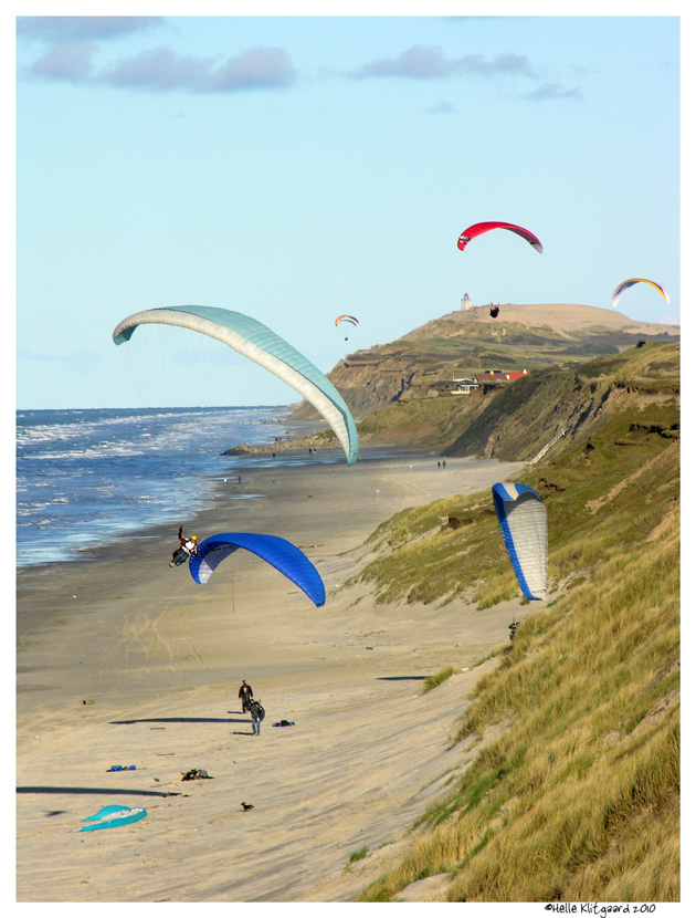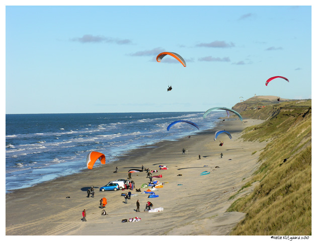 Vi endte ved Løkken, hvor vi kørte lidt på stranden – pludselig opdagede vi paragliderne på Furreby klint, så vi kørte op fra stranden med Furreby som mål.