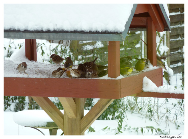 Emma, Jensen og jeg har været i haven og fodre fuglene.
