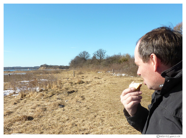 Vi fandt en bænk ved Kaløvig, hvor vi drak kaffe og spiste mad.