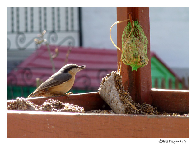 Men jeg kan da se, at du har andet og mere end blot mejsebolde på dit foderbræt.. Er det noget hjemmelavet? (På billedet med spætmejsen)