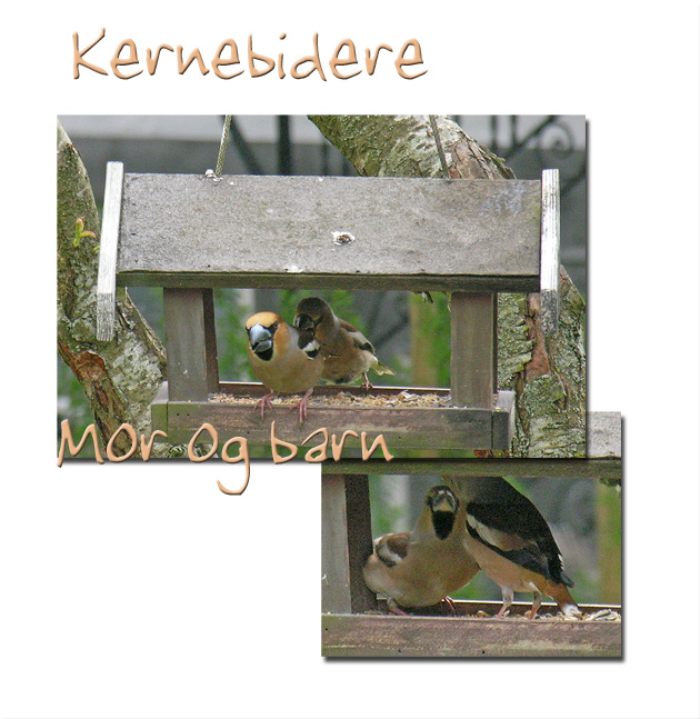 Du er en heldig kvinde sådan at få jævnlig besøg af kernebideren. På denne tid af året og med den adfærd er der ingen tvivl om, at det er en han, der fodrer hunnen. Det er jo vår og amorinerne flyver i luften 😉