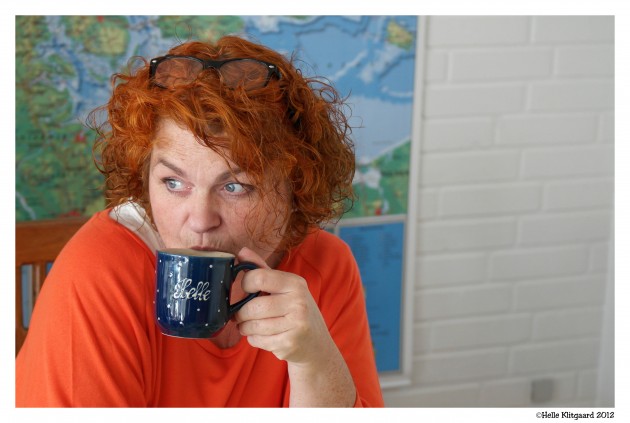 Vi sad ved et bord lige ud til Centertorvet, hvor det vrimlede med mennesker. Pludselig fik jeg den der fornemmelse, som I sikkert kender “der er en eller anden, som har indstillet sin radar på mig”. Jeg kiggede op, og jeg så en kvinde, som smilende var på vej i mod mig. Jeg smilede til hende og tænkte: “kender jeg hende?” Hun kom helt hen til mig og sagde: “jeg læser din blog – du ser skidegodt ud i virkeligheden – jeg lagde mærke til dit røde hår – god jul” nærmest ud i en køre. Jeg nåede lige at sige: “Næh mit røde hår kan man ikke lige overse og god jul”, så var hun væk igen.